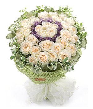 Stars Unlimited bouquet33 champagne roses, decorative euphorbia marginata and grass crystal jewelry.